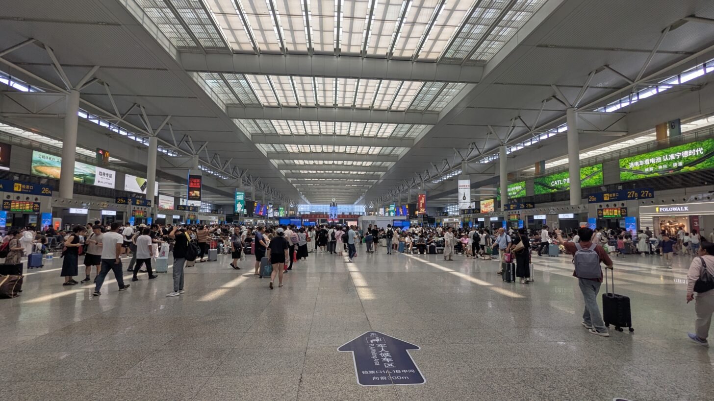 Now after I landed in Shanghai, I got the Maglev train – that’s short for magnetic levitation – from the airport to the city centre, and I didn’t really need to do this. I could have got the subway directly from Pudong airport to Hongqiao railway station, but the Maglev train is the fastest train in the world. It can get up to 400 kilometers per hour, I believe. Although they cap the speed at 300, so it only goes up to 300 kilometers per hour, but it’s still an incredibly fast train journey, and it gets you from Pudong Airport to the city centre in about 10 minutes.