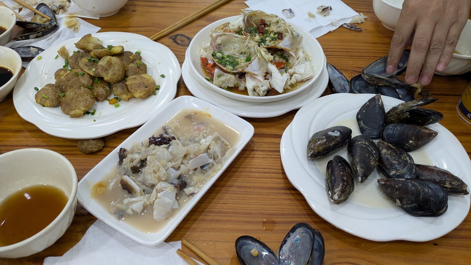 Another cuisine I’ve tried is the local Ningbo cuisine. Because Ningbo is a coastal city, it’s a port city, it is of course big on seafood. So some of my new Chinese friends, I’ve made a few friends, some of my new Chinese friends took me out to some local Ningbo restaurants and we had such delicious dishes as hairy crab, fish and tofu, uh, prawns, shrimps. A lot of seafood and all really delicious. Now, unlike Sichuan food, which is very spicy, Ningbo food is very fresh, and it tends to be more kind of like sour, pickled cold flavours. So fortunately that’s a kind of cuisine which is a bit lighter on my stomach.