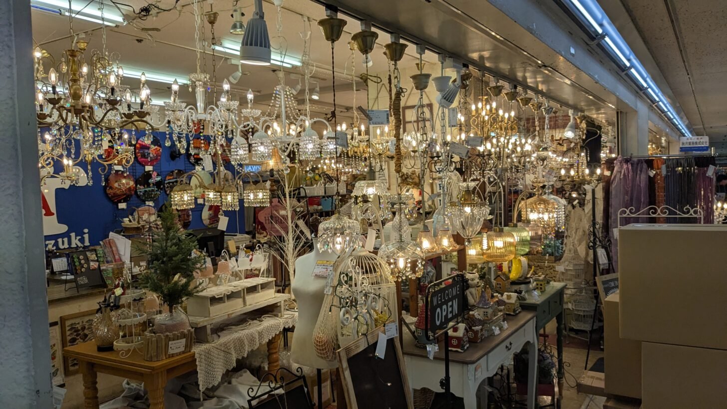 Honestly, Osaka has really lovely shopping arcades, lovely secondhand and vintage shops. There was this gorgeous shop that just sold chandeliers and pendant lamps, and all the lamps were on in the shop, and it just looked so beautiful and kind of felt unintentionally Christmassy. And I just love bookshops in Japan, especially secondhand bookshops. You can get Japanese books so cheaply. Like a lot of the books are like two to 400 yen, which is like, let me calculate. It’s like one to three pounds. It’s very cheap, and I love Japanese literature. I love reading in Japanese, so it was a wonderful opportunity as well.